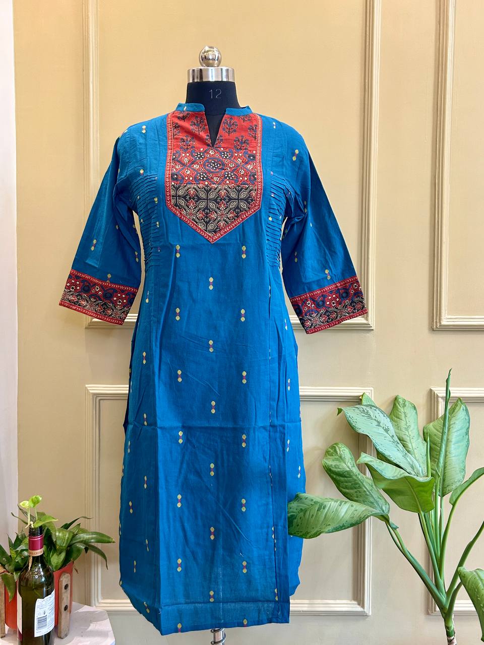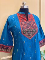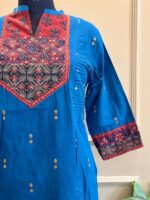 -19%Traditional Ajrakh yoke meets modern sidecut in this elegant handloom kurti.