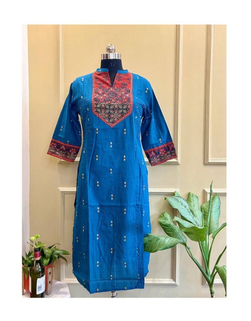 Ink Blue Ajrakh Panel Kurti
