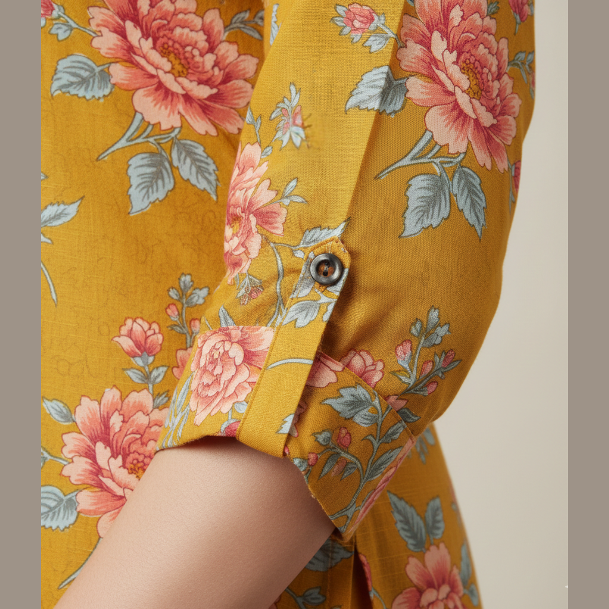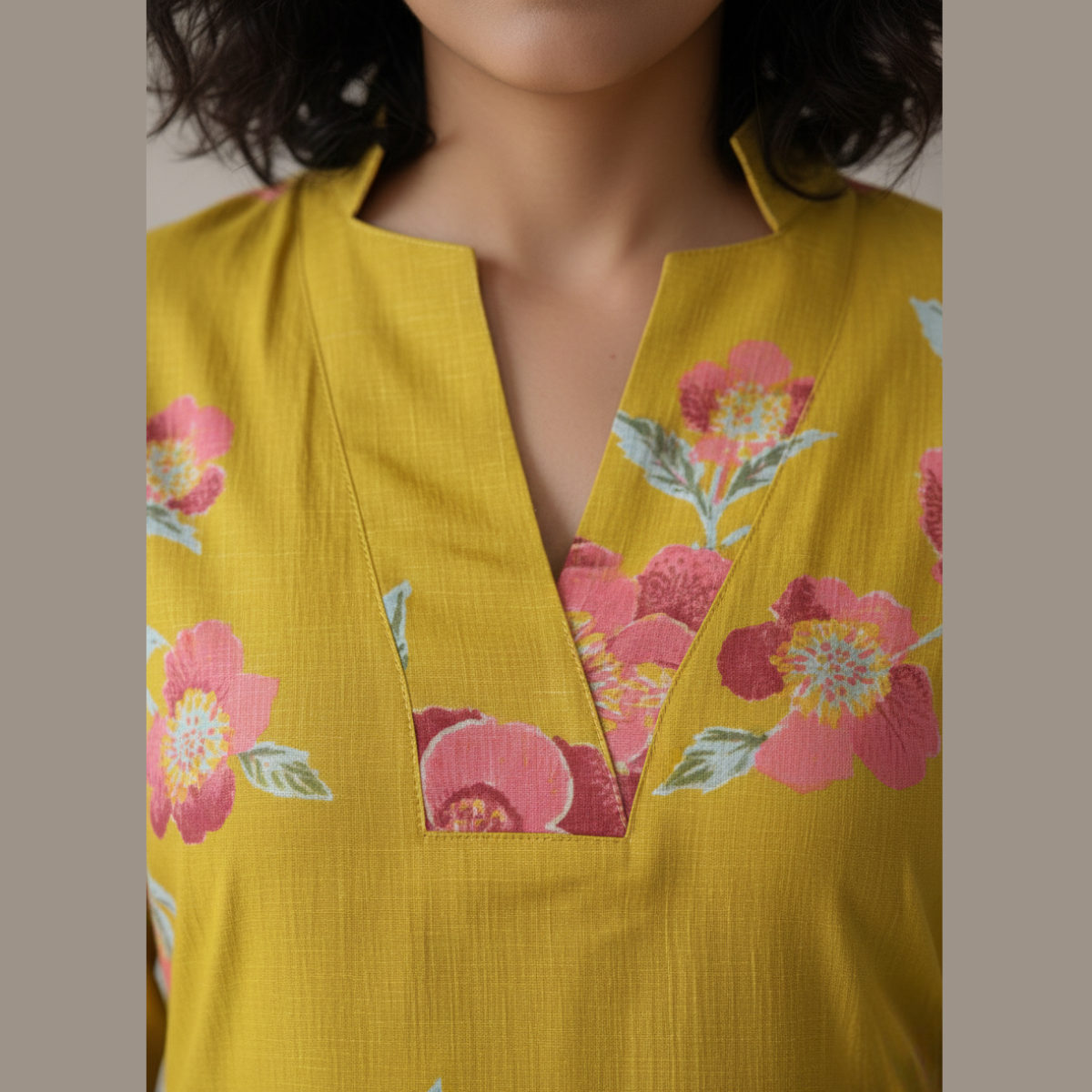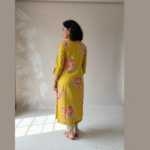 Vibrant Aesthetic: A stunning mustard yellow base adorned with high-definition pink and peach floral prints, offering a fresh, contemporary take on traditional ethnic wear.