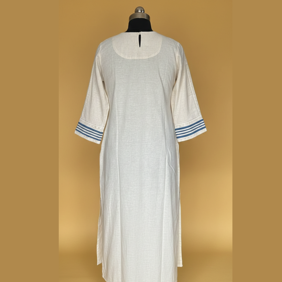 Delicate crochet lacework detailing on sleeves adds a handcrafted touch