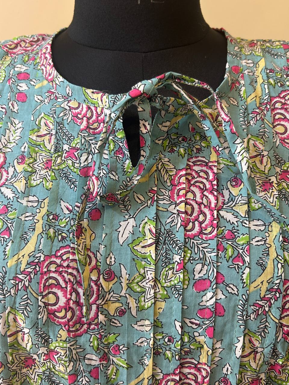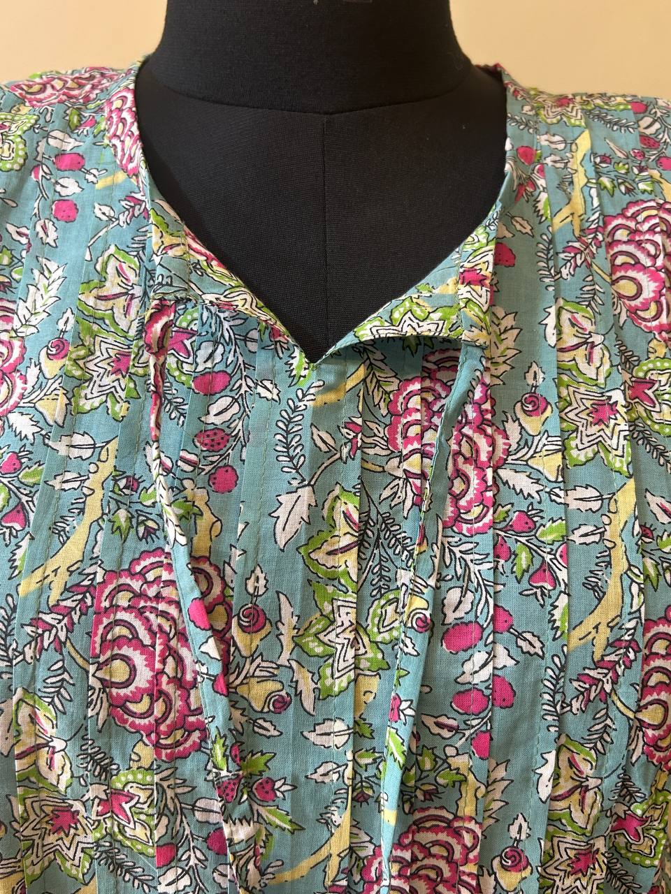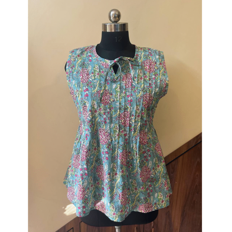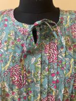 Maintenance: Gentle hand wash in cold water with mild detergent to preserve the vibrancy of the traditional Sanganeri dyes.